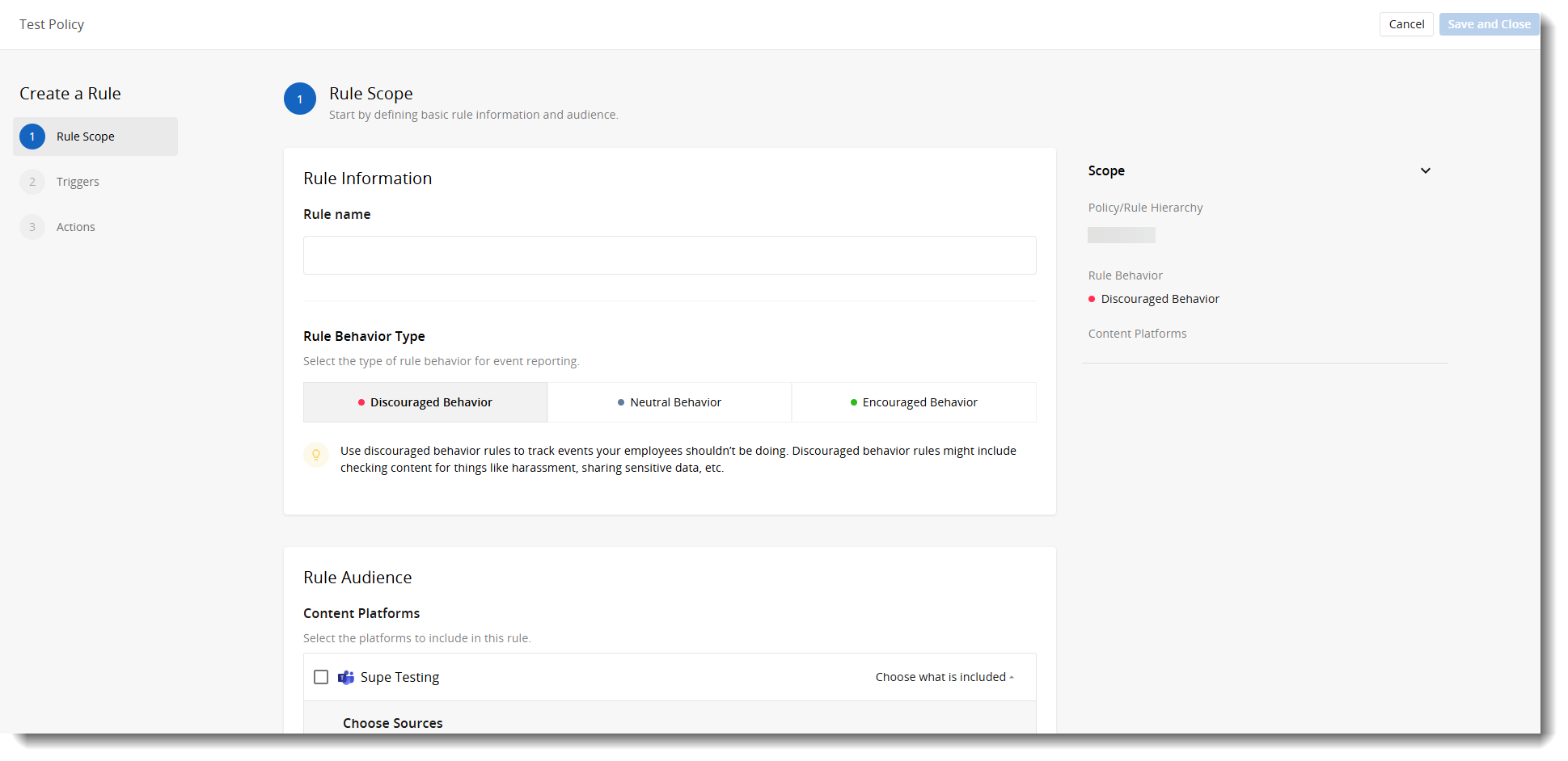 - Define the Rule Behavior Type. You can use the tooltips below each Behavior type for additional guidance.