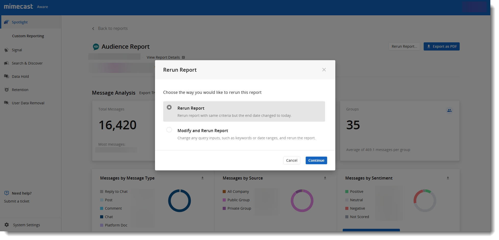 - Audience Report: Create a report from a group of users to gain a pulse of what's happening in your organization. No keywords necessary.
